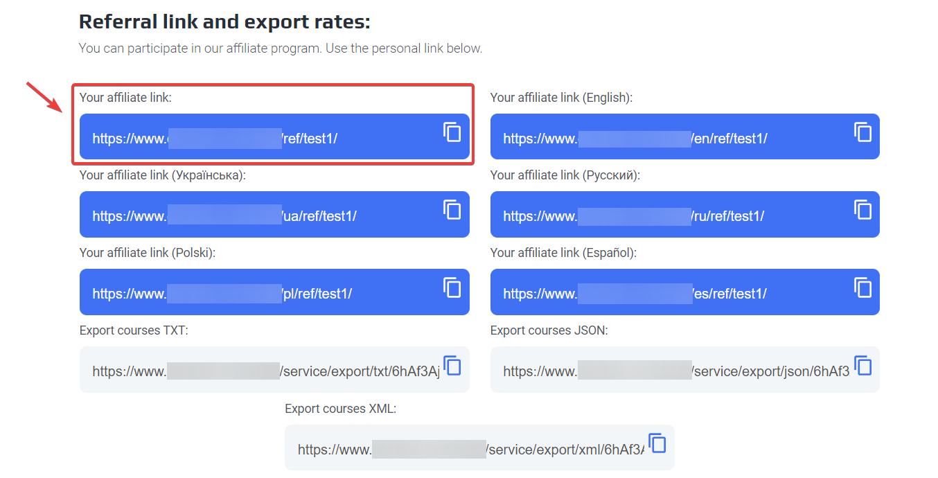 Щоб отримати ваше партнерське посилання, вам потрібно увійти в свій акаунт за допомогою електронної пошти та пароля, потім перейти до розділу 'профіль' у секцію 'партнерська програма', і ваше партнерське посилання буде розташоване нижче.